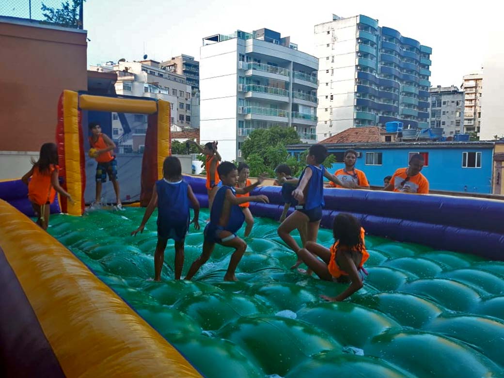 Uma Pool Party é a combinação perfeita de diversão, sol e refrescância para curtir um dia animado à beira da piscina! Preparamos inúmeras atividades como: surf em tapetes, piques, mergulhos, guerra de bexigas, tesouro pirata, entre outras. Toda programação voltada para piscina, além de brincadeiras fora da água!
